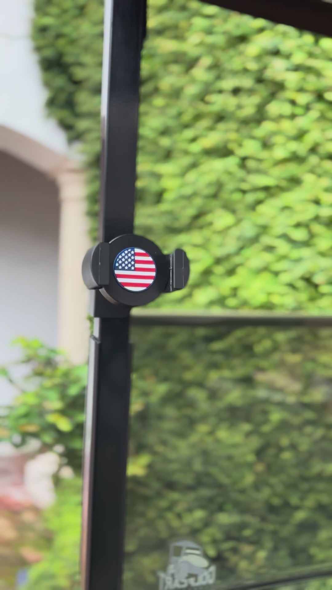 - Strong magnets hold the mount onto the golf cart's support bars/rails